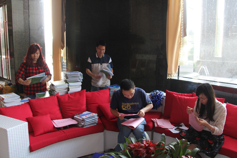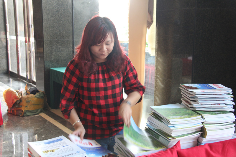 (會(huì)務(wù)工作人員小黃在認(rèn)真折疊會(huì)議指南)