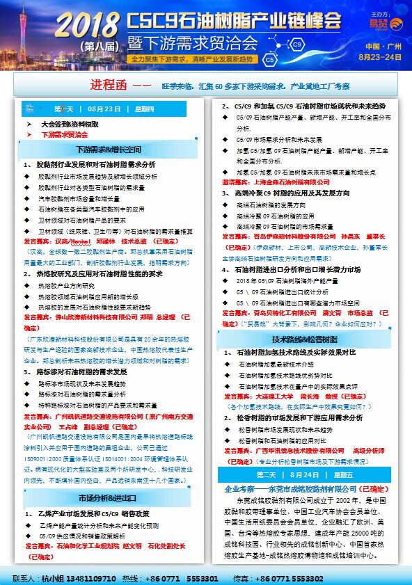 2018(第八屆)C5C9石油樹脂產業(yè)鏈峰會暨下游需求貿洽會(最新進程)