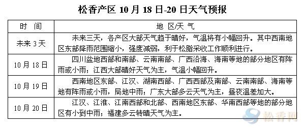 華訊松香網(wǎng)溫馨提醒:未來三日,西南地區(qū)東部降雨范圍有所縮小,強(qiáng)度減弱,兩廣、福建、江西、貴州等地大部以多云轉(zhuǎn)晴天氣為主,氣溫小幅回升;另隨著秋季深入,各地晝夜溫差加大。當(dāng)前多數(shù)產(chǎn)區(qū)已臨近生產(chǎn)旺季尾期,松脂供應(yīng)商采脂售脂積極性不高,局部采脂工提前下山,市場(chǎng)脂量持續(xù)偏少;云南地區(qū)已進(jìn)入生產(chǎn)旺季,但脂量亦未見明顯放大。后期脂量或由價(jià)格主導(dǎo)。