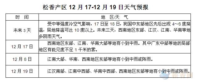 松香產(chǎn)區(qū)12月17日-19日天氣預(yù)報(bào)