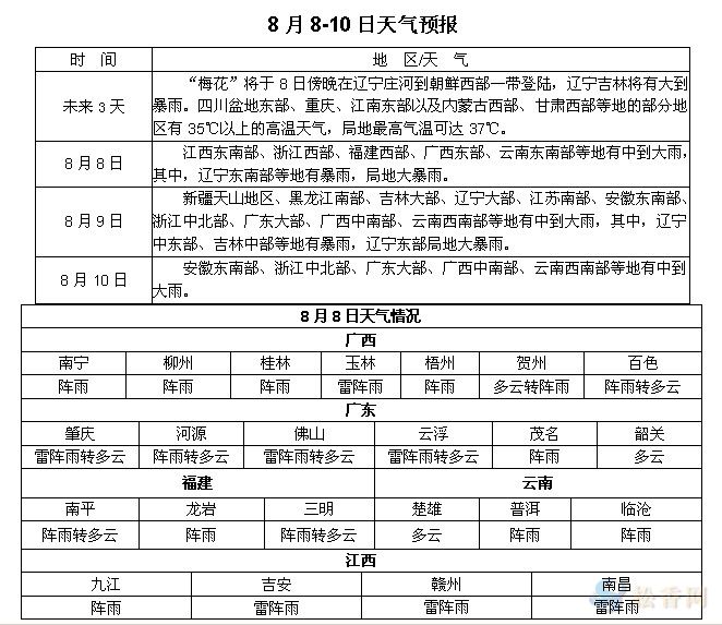 松香產(chǎn)區(qū)8月8-10日天氣預報