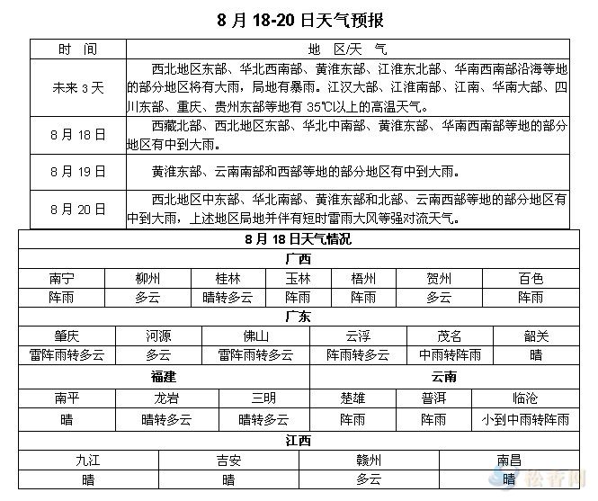 松香產(chǎn)區(qū)8月18-20日天氣預報