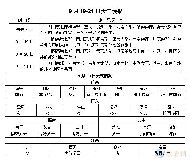 松香產(chǎn)區(qū)9月19-21日天氣預(yù)報(bào)