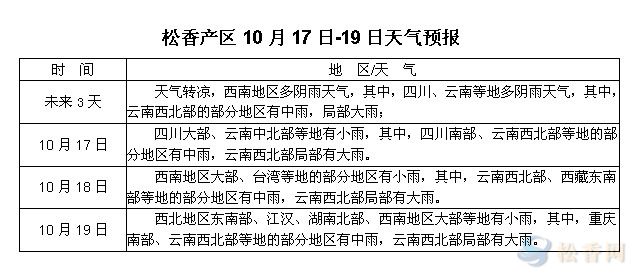 華訊松香網(wǎng)提醒:未來(lái)三天兩廣、江西福建等松香主產(chǎn)區(qū)秋高氣爽,除了晝夜溫差較大之外,天氣情況較好。值得關(guān)注的是西南地區(qū)多陰雨天氣,屆時(shí)云南、四川等地降水持續(xù),尤其云南多地受雨水天氣影響,松脂量或?qū)⒉粫?huì)大量釋放,但是否對(duì)會(huì)在松香市場(chǎng)整體走勢(shì)有所影響,有待觀察。