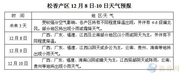 華訊松香網(wǎng)提醒:隨著冬季到來,較強(qiáng)冷空氣影響較為頻繁,降溫大風(fēng)天氣將會增多,仍在上山采收松脂的產(chǎn)區(qū)需注意降溫與大風(fēng)天氣對松脂出油量及質(zhì)量的影響,合理安排采收。