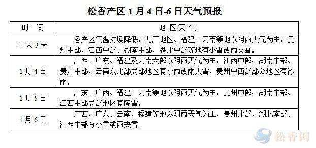 松香產(chǎn)區(qū)1月4日-6日天氣預(yù)報