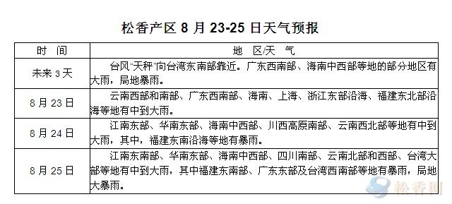 松香產(chǎn)區(qū)8月23日-25日天氣預(yù)報(bào)
