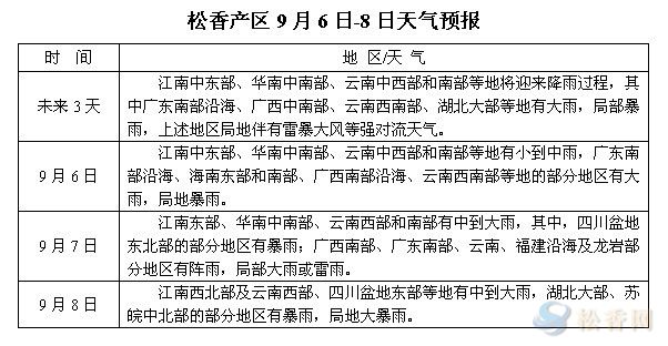 華訊松香網(wǎng)溫馨提醒:未來三天,桂粵滇閩贛等產(chǎn)區(qū)以晴或陰天為主,晝夜溫差較前增大,另桂中南、粵中南、滇西南部分地區(qū)有陣雨或雷雨,局部大到暴雨。本周兩廣、云南、湖北等市場(chǎng)松脂流通量仍偏少,福建、江西局部較前略有增多。另外,進(jìn)入9月,云南產(chǎn)區(qū)雨季逐漸結(jié)束,生產(chǎn)旺季即將到來,市場(chǎng)雖有旺季推遲的預(yù)期,但現(xiàn)階段業(yè)內(nèi)已將部分關(guān)注點(diǎn)轉(zhuǎn)向云南市場(chǎng)。