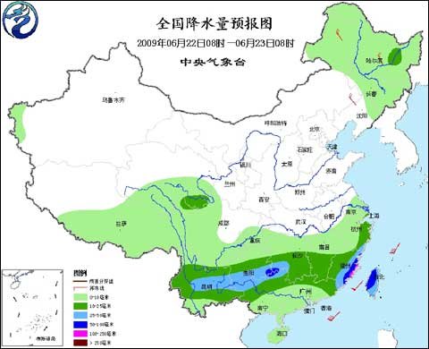 6月22日全國(guó)降雨量預(yù)報(bào)圖