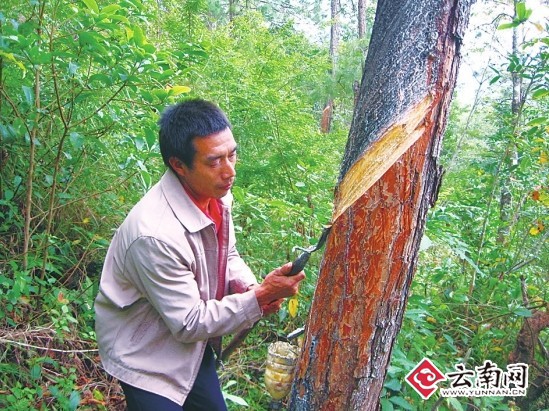 “近幾年來,由于松脂價格不斷攀升,山區(qū)農(nóng)民家家戶戶都上山采割松脂,我們岔河村民小組共48戶人家,每年每戶僅采割松脂收入就有幾萬元,整個村民小組家家戶戶都買了拖拉機(jī)或摩托車,有的還蓋了新房。2010年全鄉(xiāng)實現(xiàn)松脂產(chǎn)量2400噸,產(chǎn)值2640萬元,人均收入1847元。”鄉(xiāng)黨委書記陳司靈樂呵呵地說。