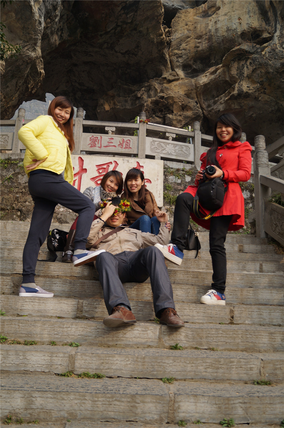 劉三姐的四妹、五妹在對歌臺前賣萌