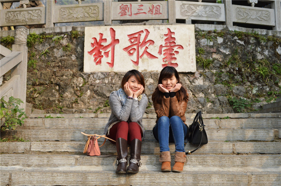 劉三姐的四妹、五妹在對歌臺前賣萌