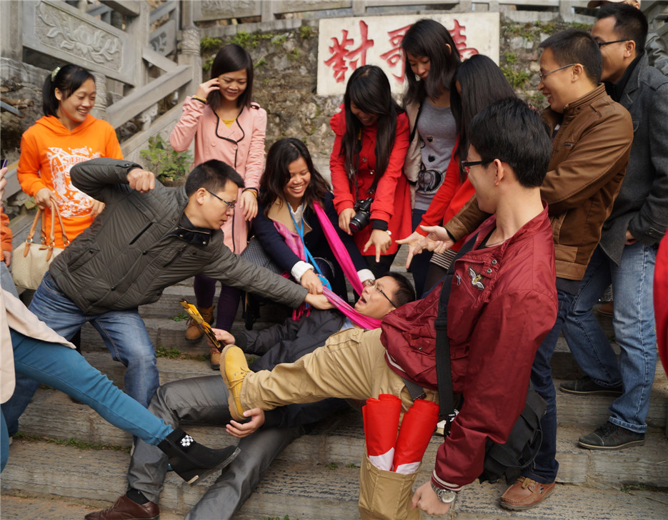 莫老爺及其爪牙與劉三姐姐妹對唱山歌