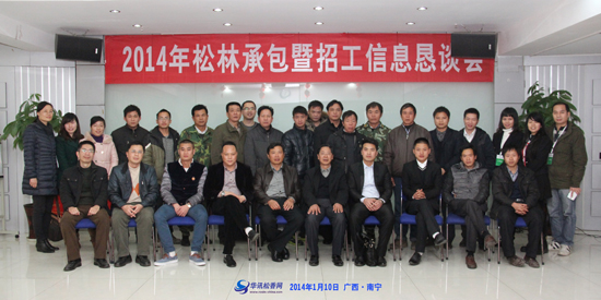 1月10日下午,由華訊松香網(wǎng)主辦的“2014年松林承包暨招工信息懇談會”在華訊集團多功能會議室隆重舉行,來自于廣西、云南、廣東、貴州、海南等地近40名松林松脂從業(yè)者參加了本次會議。會議由廣西華訊信息技術(shù)有限公司副總經(jīng)理陳有斌主持。