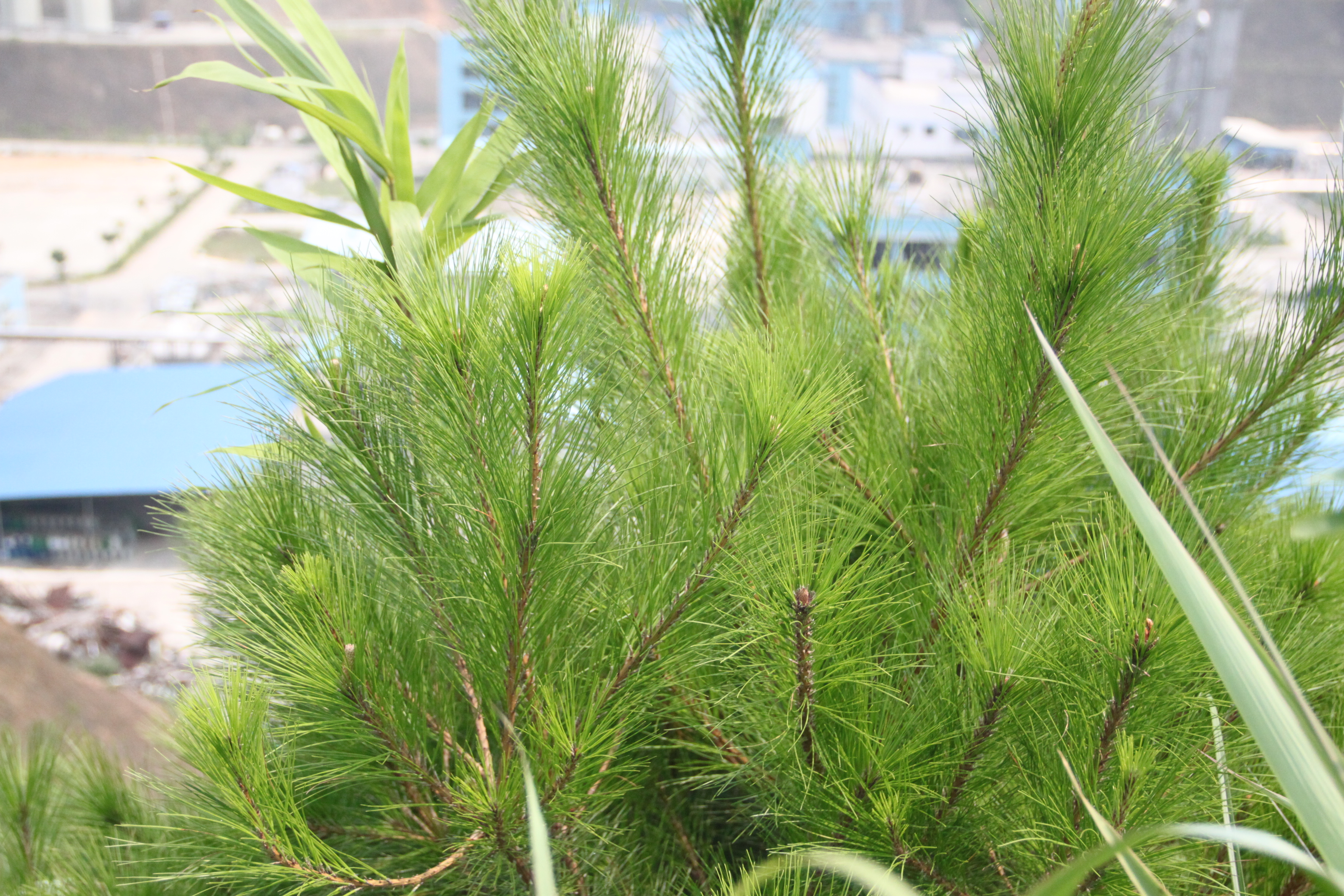 圖中這一株馬尾松是離我們最近的松樹,樹齡兩年,位于被灌木叢包圍的斜坡上。而原計劃拍到的各種松樹,分別長在環(huán)繞梧松廠區(qū)的各個山頭,并且都是樹齡不到三年的幼苗。無奈,我們只好頭頂驕陽悻悻然下山。