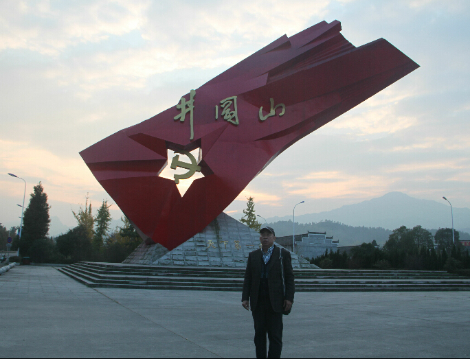 參會嘉賓在景區(qū)標(biāo)志雕塑前拍照留念