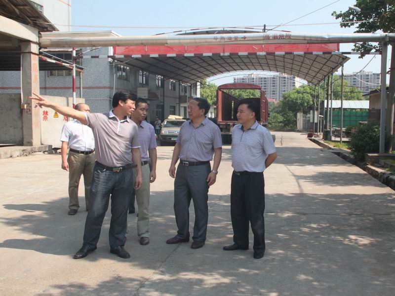 金安林產(chǎn)總經(jīng)理李梅芳(左一)介紹公司情況