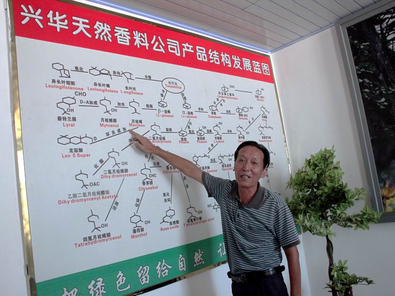 興華香料總經(jīng)理張親春介紹生產(chǎn)線流程圖