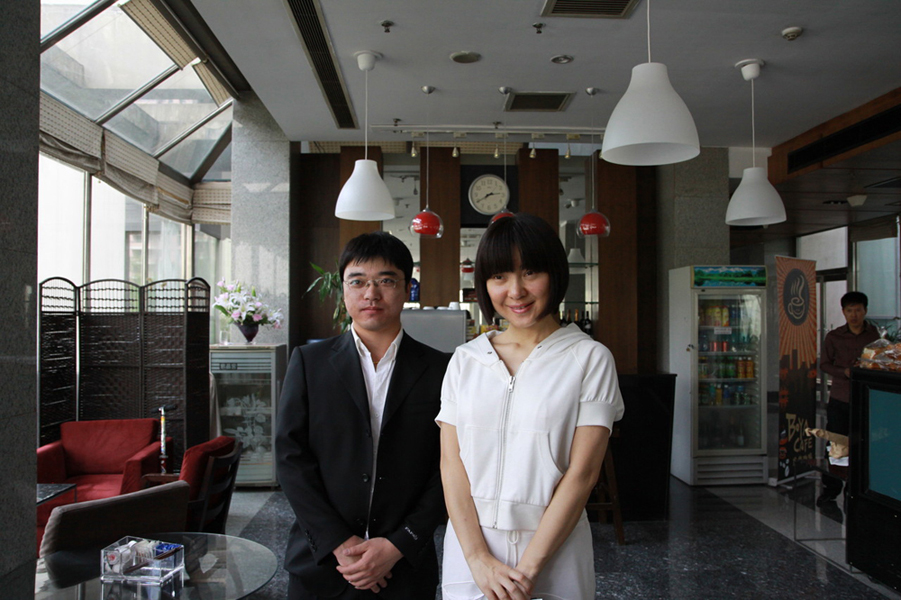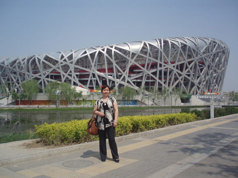 在鳥巢外留影