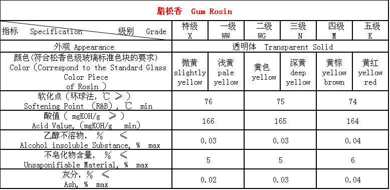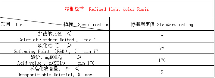 松香及系列產(chǎn)品技術(shù)指標(biāo)
