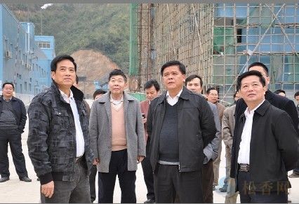 圖一 竺坤松(右二)到梧松視察,右為梧州市萬秀區(qū)委書記謝祥禧,左為梧松總經(jīng)理車乾池