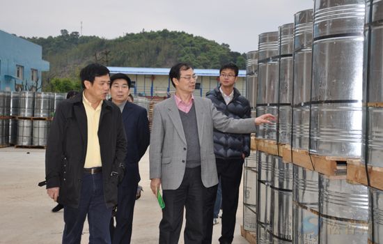 廣西區(qū)商務廳副廳長孫劍秋(右二)到廣西梧州松脂股份有限公司視察工作,左為梧松總經理車乾池。
