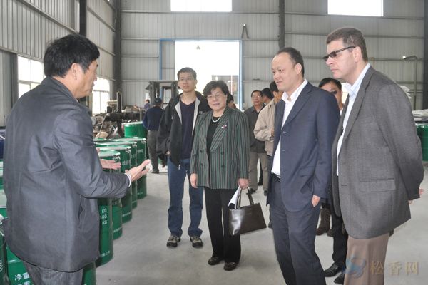 考察團在工廠內參觀。右一為PPG亞太區(qū)生產總監(jiān)Ricardo、yPPG姚健清大中華區(qū)銷售總監(jiān)(右二),總經理車乾池(左一),右三公司副總經理全楚娃