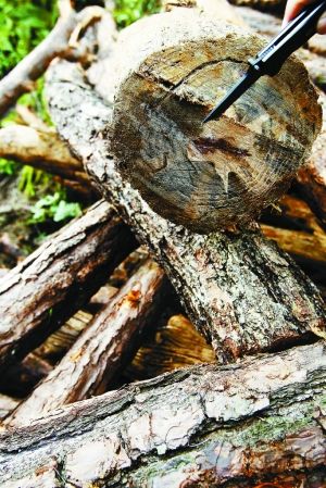 受到蟲(chóng)害的馬尾松切面會(huì)出現(xiàn)藍(lán)斑。