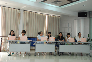 第一環(huán)節(jié):首先,男女嘉賓以自我推薦的方式上臺做嘉賓,李嫻靜、曾宇、張梅、劉如云等幾位女生微笑著勇敢地款款踏入女嘉賓席。相比女員工落落大方的自我推薦,男員工較為靦腆,只有一位男嘉賓自告奮勇登臺。他一上場激起了全場的歡呼,因為他是以“松香客戶”的身份來參加活動,名叫李品禮。參加非誠勿擾的嘉賓人數(shù)不足怎么辦?主持人有好招,“接歌”賽來推薦。由主持人劉峰起歌,場下組員按歌詞最后一個字接歌,三十秒內接不上的由組長推薦隊員到嘉賓席。幾輪小組賽下來勝者少,敗者多,多名帥男靚女被組長“貢獻”出來。十四位女嘉賓應運而生,在組員們熱情高漲的呼聲又把玉慶斌、蘇愛勇、雷延聲、蘇致誠四位男嘉賓推上競爭區(qū)。