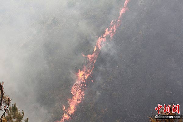 圖為,順山勢(shì)蔓延的一條火線。