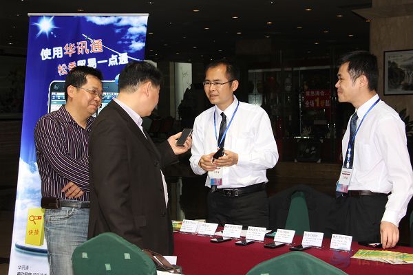 華訊松香網(wǎng)長沙訊 長沙會議報(bào)到工作在緊鑼密鼓的進(jìn)行著,而在簽到臺旁邊的“華訊通”展臺也沒閑著,它吸引了不少參會代表的駐足觀看。他們聽工作人員仔細(xì)講解,并不時詢問相關(guān)問題。