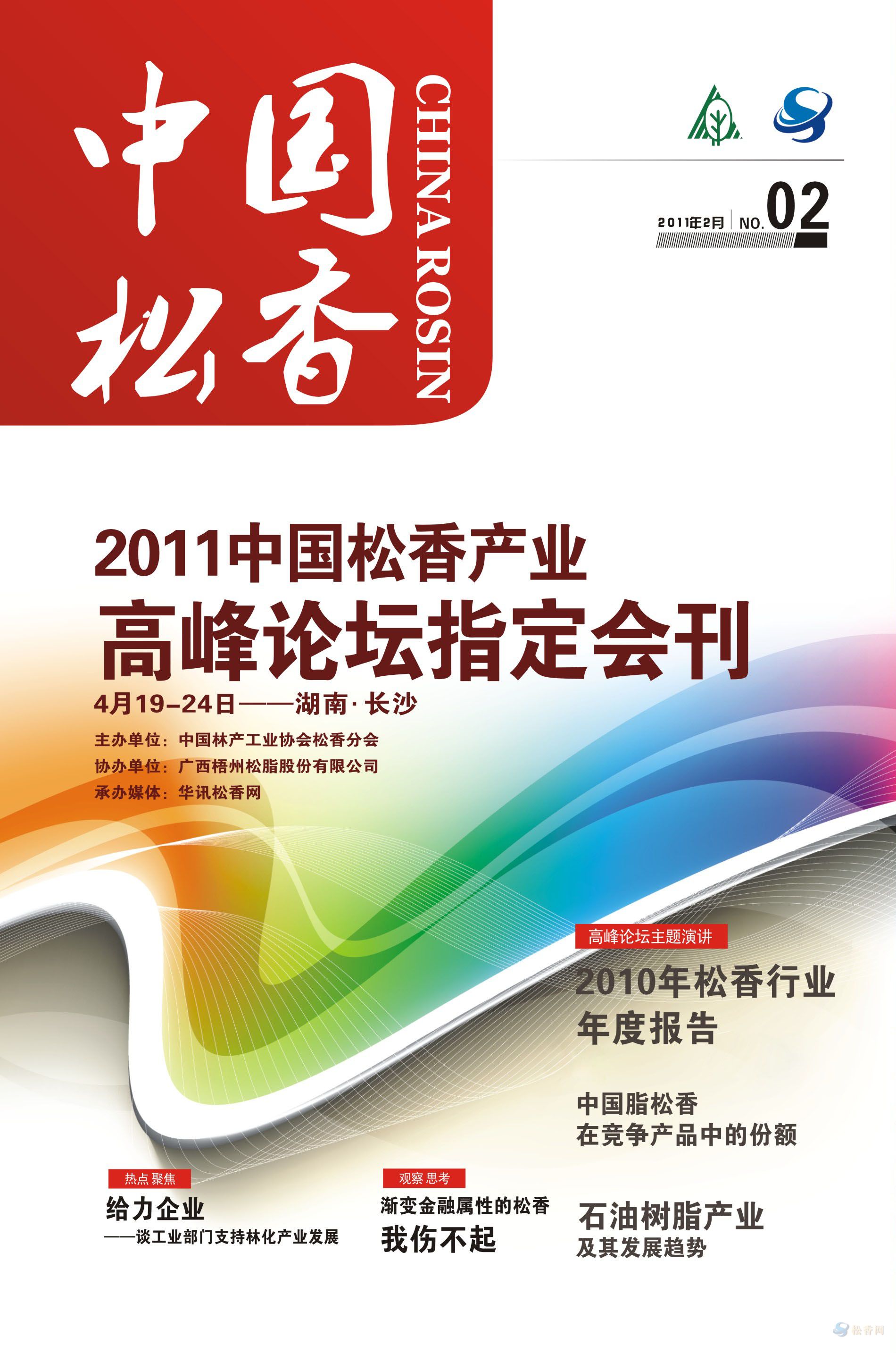 《中國松香》(雙月刊)在2011年初正式創(chuàng)刊后,連續(xù)推出了第一、第二期。本刊以其豐富的行業(yè)資訊和最新的行情信息,對行業(yè)存在的問題及發(fā)展趨勢進(jìn)行深度探討,獲得了業(yè)內(nèi)廣泛好評。尤其是《中國松香》第二期作為2011中國松香產(chǎn)業(yè)高峰論壇指定會刊,在傳達(dá)會議精神的同時,更從多角度全方位深刻剖析了行業(yè)熱點問題,得到各方高度評價?,F(xiàn)《中國松香》第三期即將出版,歡迎業(yè)內(nèi)企業(yè)投入廣告!